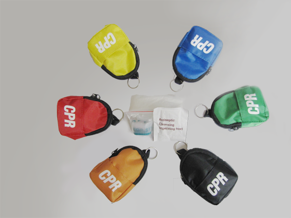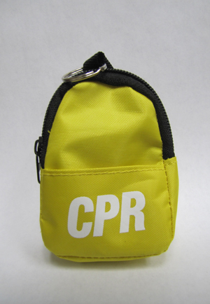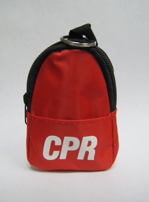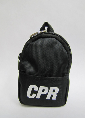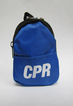 CPR Backpack Keychain, with cpr one-way valve face shield, pair of vinyl gloves, wipes.