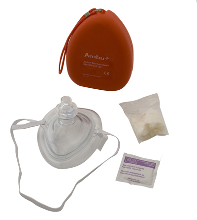 Packaged in a compact, hard shell, pocket-sized carrying case and features a patented one-way valve with filter. Prevents mouth-to-mouth contact with victims face. Leak-proof seal, re-inflated contoured soft vinyl cuff shapes easily to adult, child and infant facial contours. Transparent dome allows rescuer to check victims mouth for lip color and secretions. Mask is ready to use with no need to assemble valve and filter, saving valuable time in emergencies. Recognized by all major guarding agencies. Masks come with gloves and a wipe.